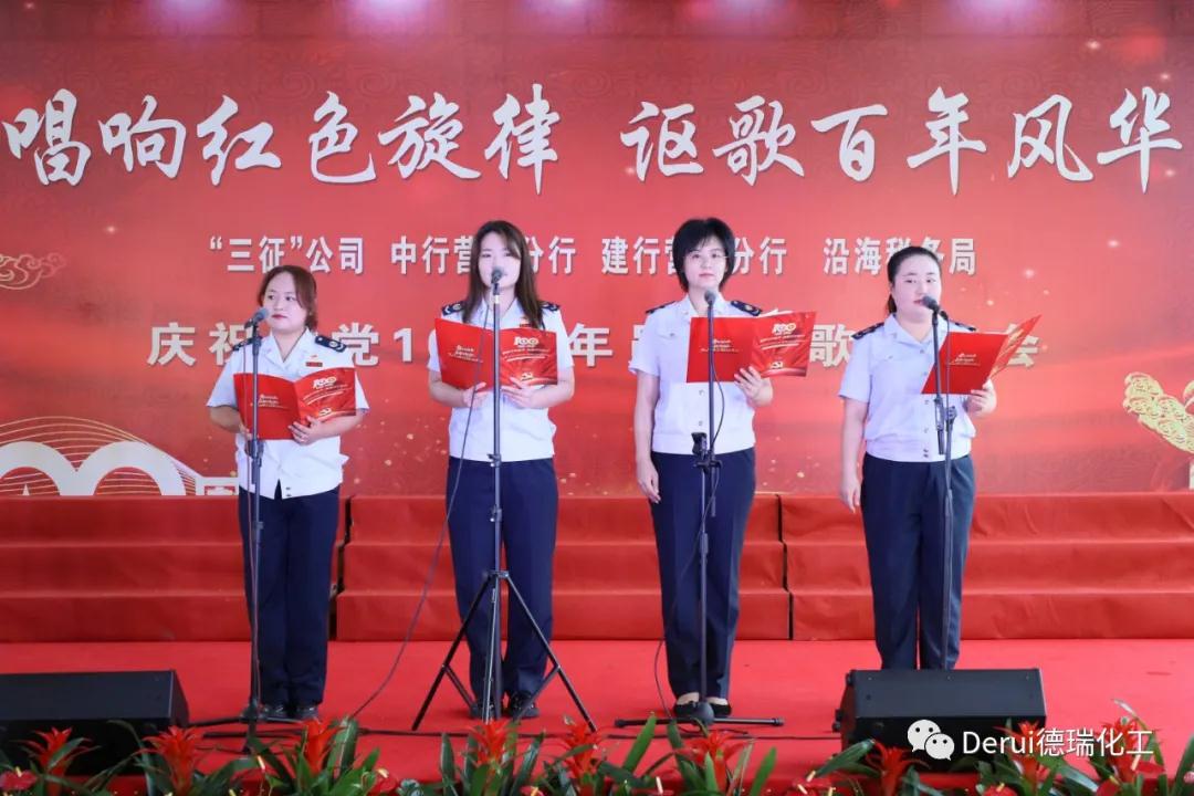 “三征”系六家公司、中行營口分行、建行營口分行、沿海稅務(wù)局的員工分別以大合唱、小合唱、獨唱、二重唱等形式演唱了《映山紅》、《稅徽下的我們》、《打靶歸來+黃河大合唱》、《祖國祖國不落的太陽》、《不忘初心》、《大中國》、《彈起我心愛的土琵琶》、《今天是你的生日,我的中國》、《社會主義好+沒有共產(chǎn)黨就沒有新中國》等經(jīng)典紅色歌曲。